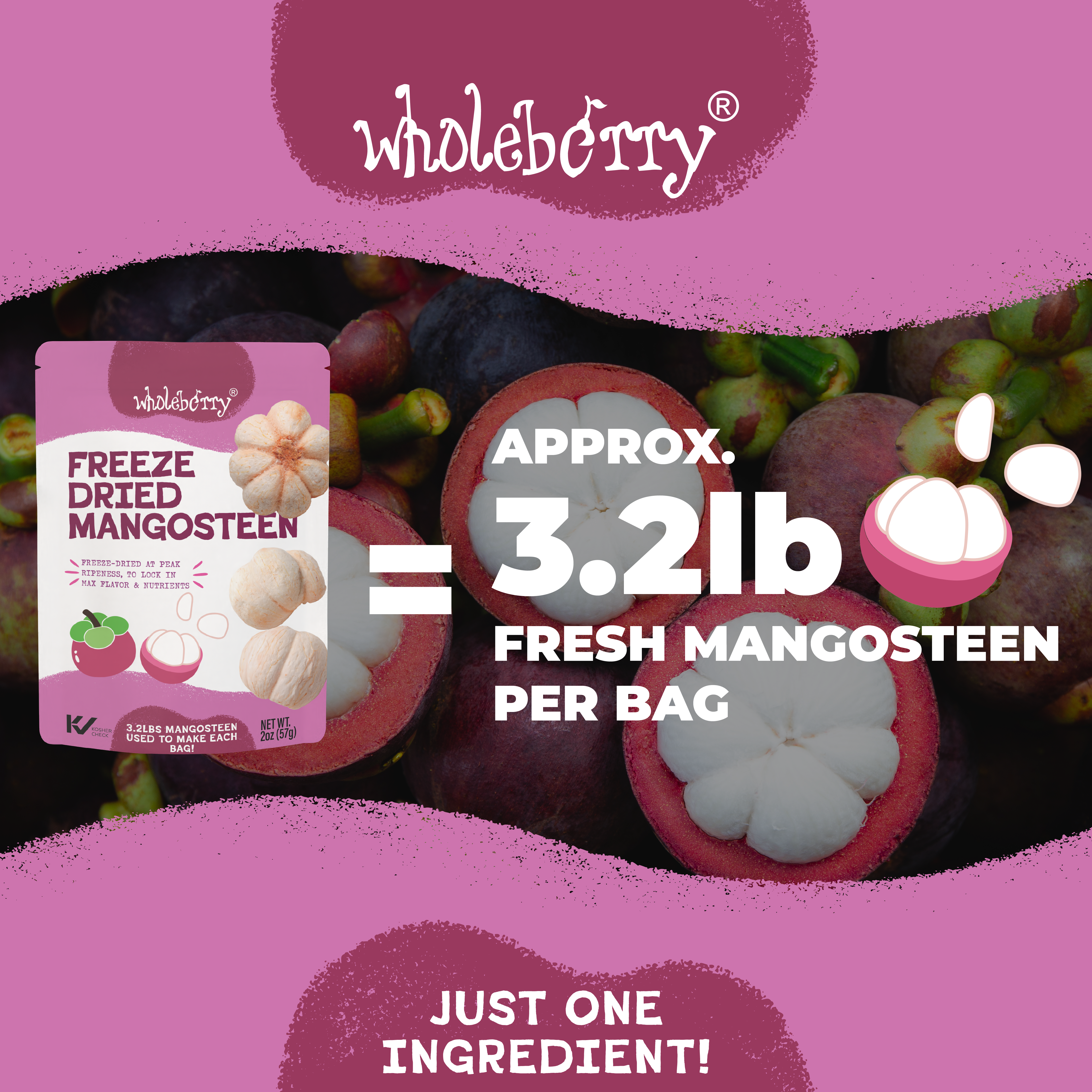 Mangosteen 🍆 Mangosteen is surprisingly refreshing and juicy. We captured mangosteen's essence in citrusy, sweet pieces (some with pistachio-like seeds).